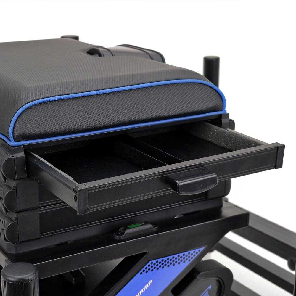 Nova vrhunska i ultra-moderna Elegance takmičarska stolica predstavlja idealan izbor za sve ozbiljne feeder ribolovce, posebno one koji teže postizanju vrhunskih rezultata na takmičenjima. Konstrukcija stolice je izuzetno stabilna, ali u isto vreme lagana, što je čini jednostavnom za transport i namještanje. Udobno sjedište pruža potpun komfor tokom višesatnog boravka na vodi, a šest čvrstih nogu prečnika 36 mm sa širokim stopama sprečavaju upadanje u meko tlo, obezbjeđujući maksimalnu stabilnost čak i na zahtjevnim terenima. Dodatna pogodnost je platforma za noge koja se uvlači, čime se postiže optimalna pozicija za precizan i udoban ribolov. Prednje i srednje noge stolice su teleskopske, što omogućava lako podešavanje visine i postavljanje na neravnom terenu. Na vrhovima ovih nogu nalaze se navojni priključci za rod restove i drugu dodatnu opremu, čime se stolica može u potpunosti prilagoditi različitim uslovima i stilovima ribolova. Praktičnost Elegance Worldchamp stolice dodatno je naglašena sistemom za odlaganje pribora ispod sjedišta. Ona posjeduje tri odvojena segmenta (kasete, module) za organizaciju ribolovačkih sitnica. Prvi segment sadrži dvije bočne fioke koje se izvlače, idealne za brzo i lako pristupanje najčešće korišćenim predmetima. Preostala dva segmenta otvaraju se podizanjem sjedišta nagore i pružaju dovoljno prostora za čuvanje većih količina sitnog pribora i dodatne opreme. Elegance Worldchamp je vrhunska takmičarska feeder stolica, konstruisana tako da zadovolji potrebe i najzahtevnijih ribolovaca. Spoj udobnosti, stabilnosti, funkcionalnosti i modernog dizajna čini je dostojnom svetskih šampiona u feeder ribolovu.