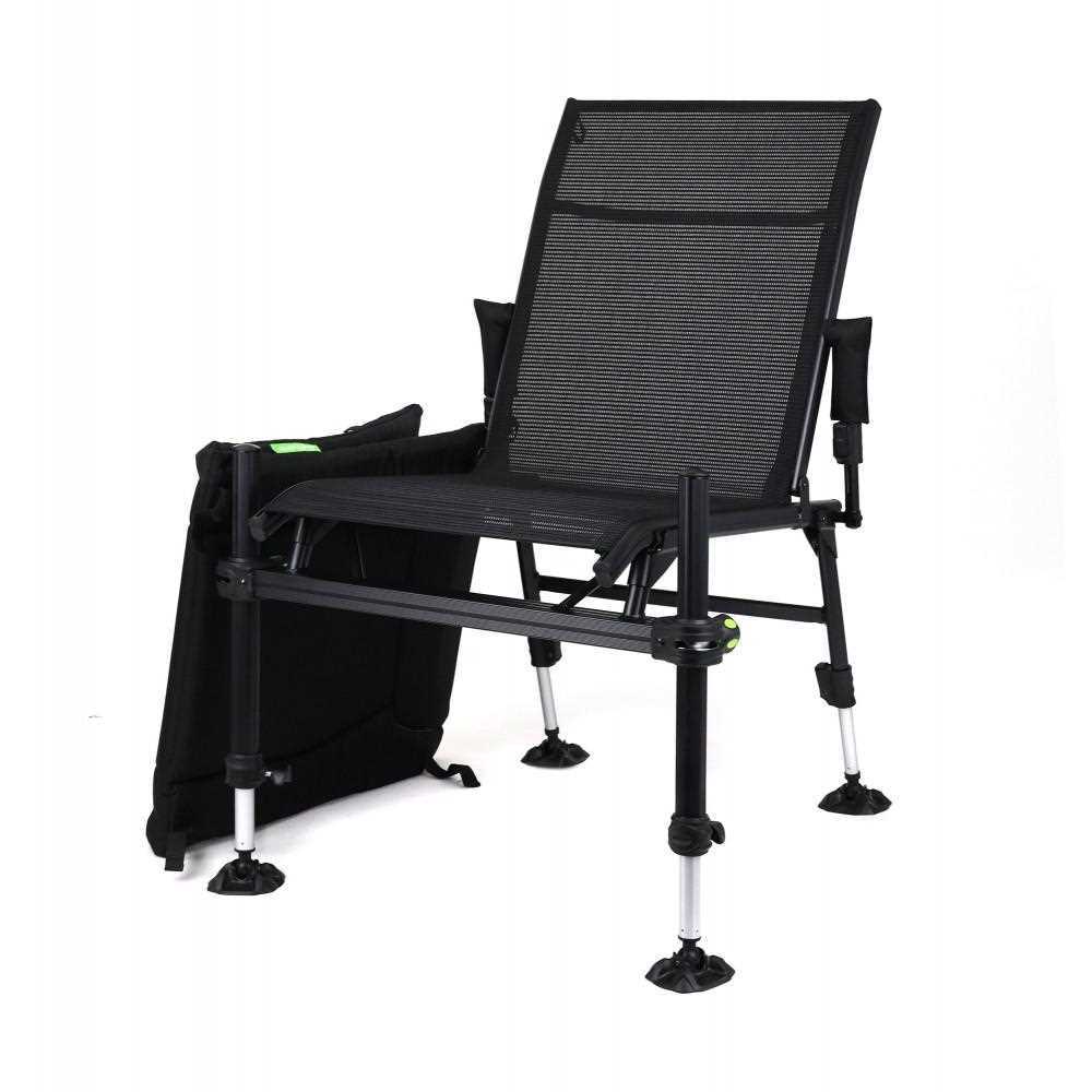 Veoma lagana i izuzetno udobna feeder stolica sa čvrstom konstrukcijom od aluminijuma i metala. Poseduje četiri podesive(teleskopske) noge sa širokim stopama koje sprečavaju propadanje u meko tlo. Prednje noge su prečnika 36 mm i na njih se mogu postavljati razni dodaci. Ova stolica ima izuzetno udobno i debelo tapacirano sedište sa podesivim uglom naslona, ugrađen jastuk u sam naslon, kao i posebno ojačan prednji deo na koji se postavljaju noge. Prednje noge imaju i gumirane stezače sa specijalno dizajniranim unutrašnjim mehanizmom koji čvrsto fiksira noge i ne dozvoljava njihovo proklizavanje. Zadnje teleskopske noge imaju ergonomski oblikovano dugme sa kojim se noge mogu produžiti ili skratiti u zavisnosti od potrebe. Takođe debelo tapacirani naslon može da se skine tokom letnjeg perioda zbog boljeg provetravanja, ili kako bi se oprao. Izuzetna stolica prema svim parametrima.
