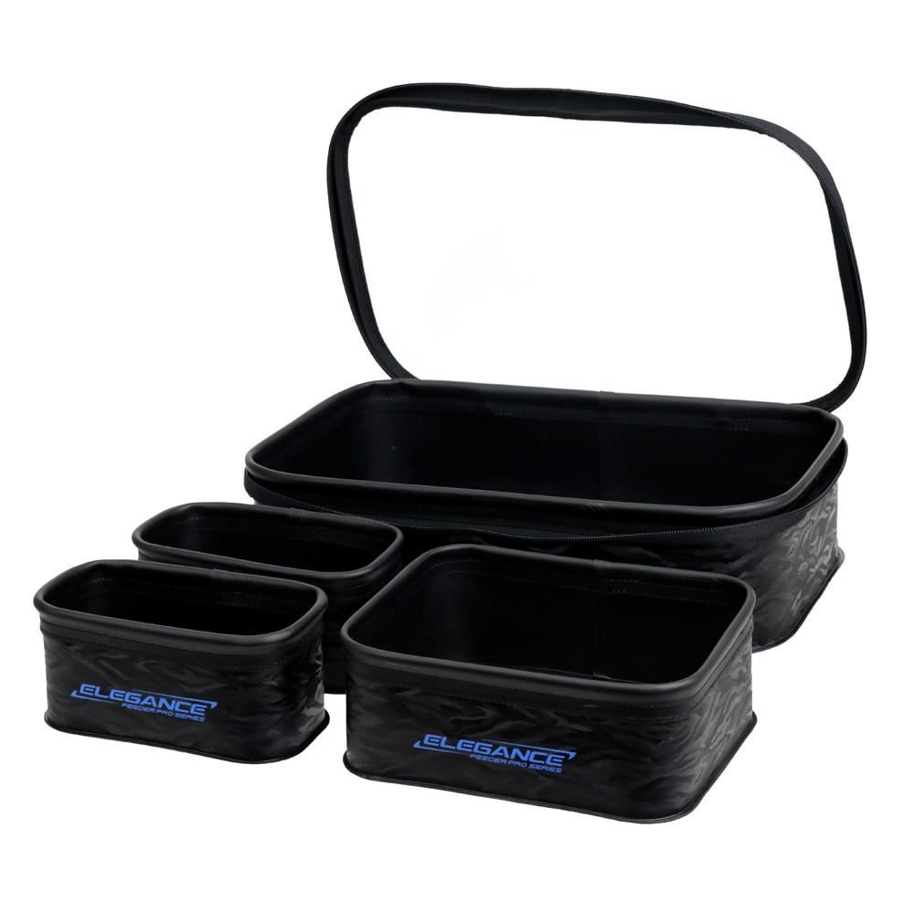 Praktičan set od 4 posude, idealan za pripremu i čuvanje primame i mamaca tokom ribolova. Izrađene su od kvalitetnog EVA materijala koji se lako pere i održava, a zahvaljujući standardnim dimenzijama (38 × 25 × 9 cm) savršeno se uklapaju u feeder tacne i sisteme sa stolica. Ove posude omogućavaju pregledno odvajanje različitih vrsta hrane i mamaca, što ih čini neizostavnim dodatkom za svakog feeder ribolovca