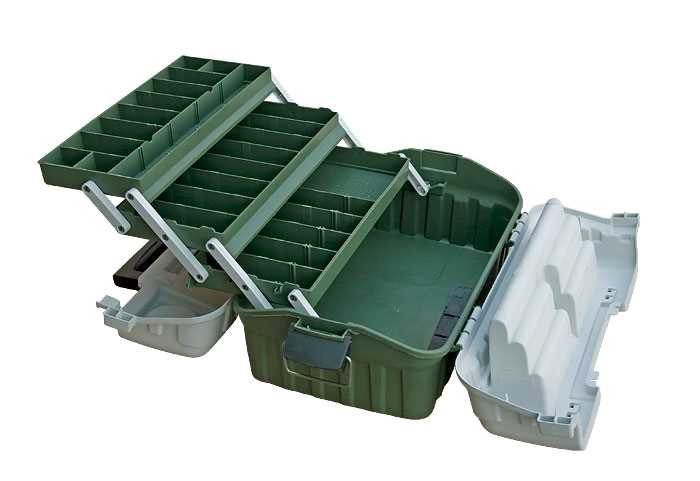 Plastična kutija/sanduk za varalice i drugi sitniji pribor, vrlo čvrsta i robusna. Posjeduje veliki broj pregrada u unutrašnjosti na čak tri nivoa kao i velik smeštajni prostor ispod njih, a zavidan smeštajni prostor ima i u samom poklopcu (jednom od dva), u koji može da se za udice okači više varalica. Dimenzije: 43x26x20 cm.